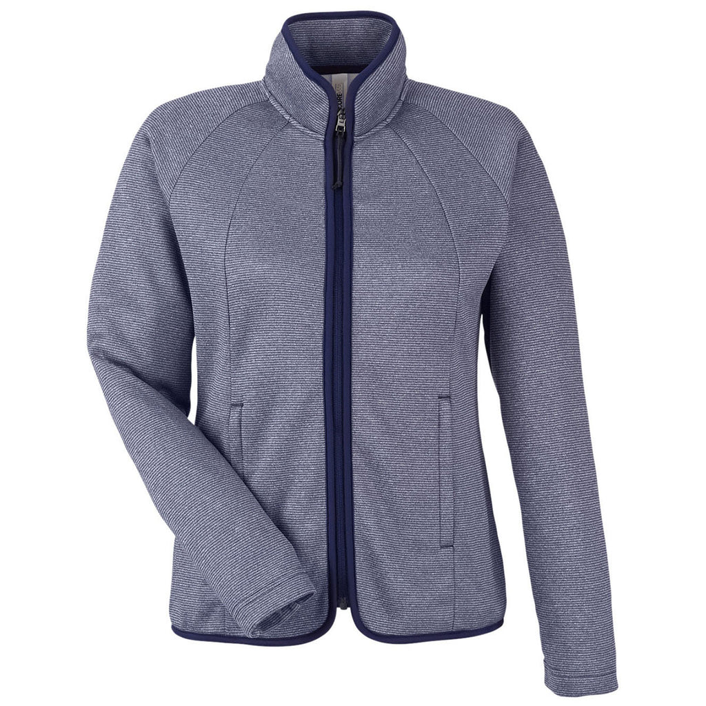 Core 365 Women's Classic Navy/White Venture Heathered Stripe Full-Zip