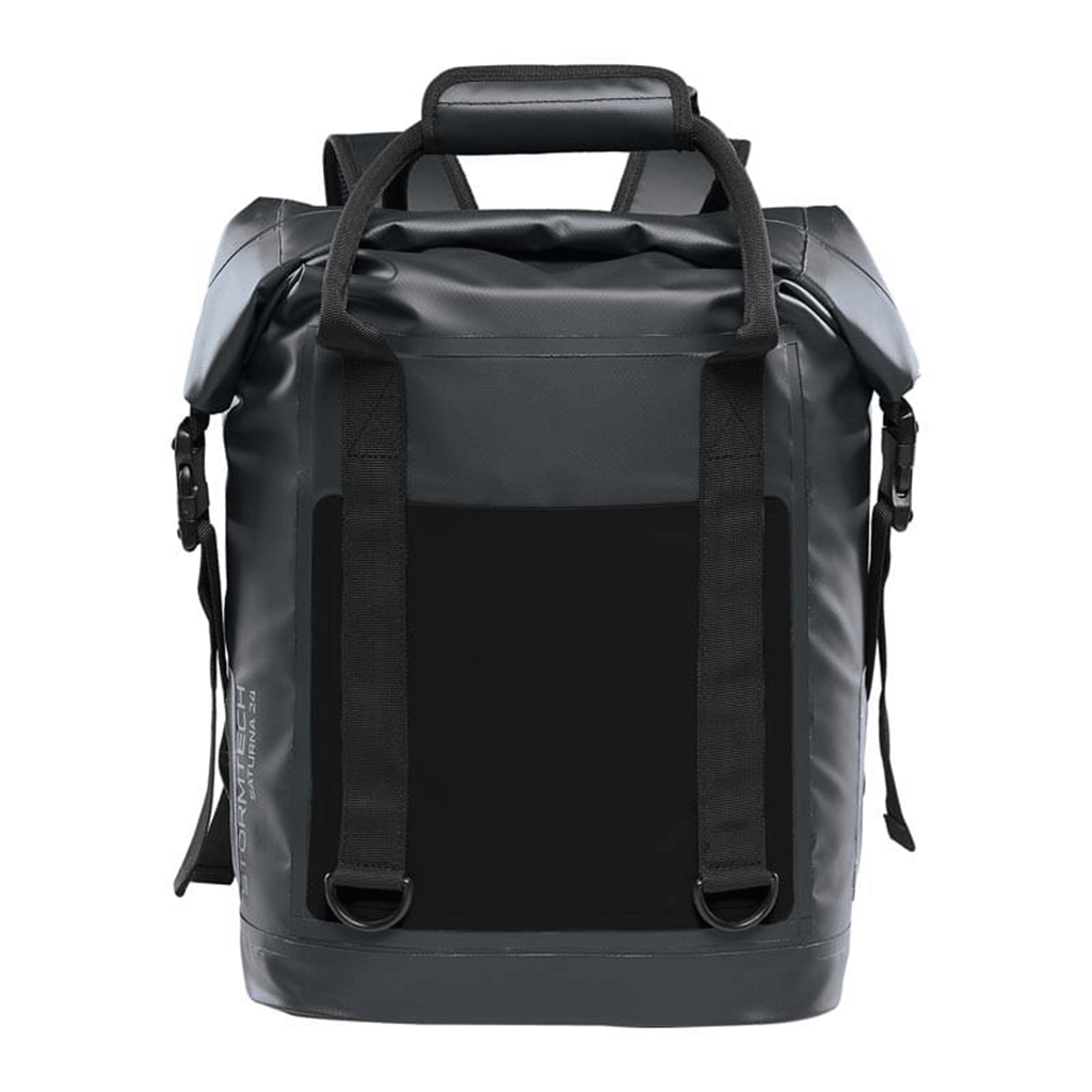 Add heat transfer to the Stormtech Black/Dolphin Saturna Cooler Bag to create a corporate gift that will be used year-round. The cooler pack I perfect for camping, hiking, or even tailgating. Add a custom logo in support of a team or a company logo to use at company outing or even give as gifts. The items in this pack will remain cold and protected with the leakproof design and welded storage compartment. A roll top closure with adjustable straps allows for easy adjustment for what you need to carry at that moment. Shoulder straps make this easy to wear whether headed to the park or a miles long hike into the mountains.Highlights