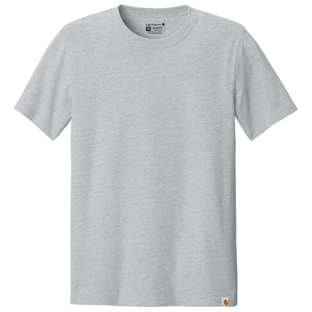 The corporate logoed Carhartt Men's Heather Grey Short Sleeve T-Shirt combines rugged durability with all-day comfort. Crafted from heavyweight cotton, it stands up to demanding tasks while offering a breathable feel. Ideal for hard workers or those needing a dependable casual option, this t-shirt ensures long-lasting wear without compromising comfort or style.This product can only ship within the United States and Canada.