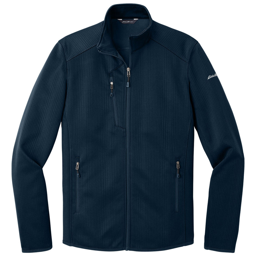Designed with textured and smooth faced fleece, the custom logoed Eddie Bauer Men's River Blue Dash Full-Zip Fleece Jacket represents the ideal jacket to take with you on business trips. The lightweight fabric does not slow you down when you hustle through airport terminals to catch flights. As opposed to most other styles of jackets, the fleece jacket easily folds and stores inside backpacks and duffel bags. Durable 100% polyester withstands the punishment delivered by bumpy airplane rides, as well as active professionals that like to participate in intense athletic competitions. Add your corporate logo to display for the people you pass by during business travel.