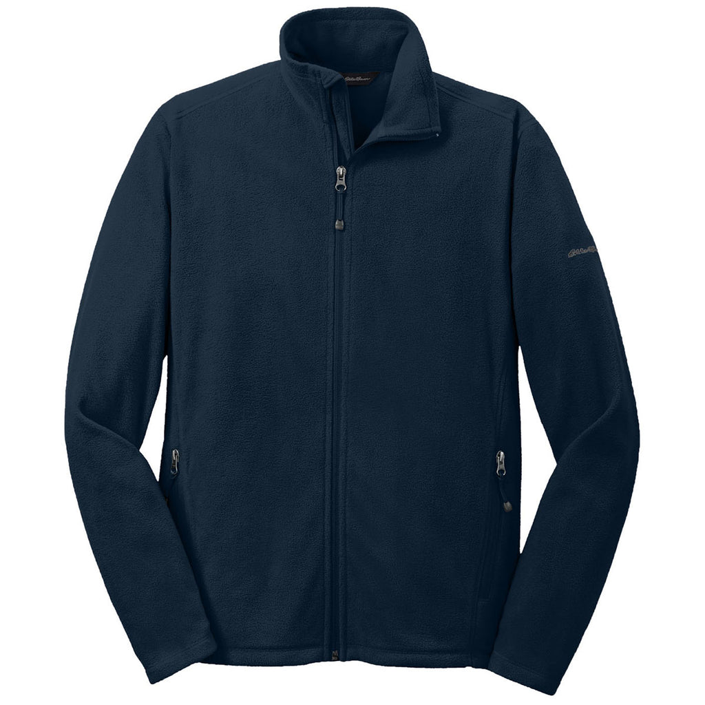 The full-zip microfleece is one of the most versatile jackets in your wardrobe, but the Eddie Bauer Men's Navy Full-Zip Microfleece Jacket is a little more than merely versatile. It's breathable, featuring a 3000G/M2 fabric breathability rating. That means it can breathe even in warmer conditions when you need a long sleeve. It has coil zippers, front zippered pockets, adjustable tab cuffs and an open hem. That means it fits snugly while offering all the functionality you can handle. The subtle crosshatch texture is soft and comfortable while maintaining the durability of the 100% polyester fabric. Rain, sleet, snow, even sunshine'this jacket can handle it all. Add your own corporate logo for an extra dash of flair for your hardworking employees.