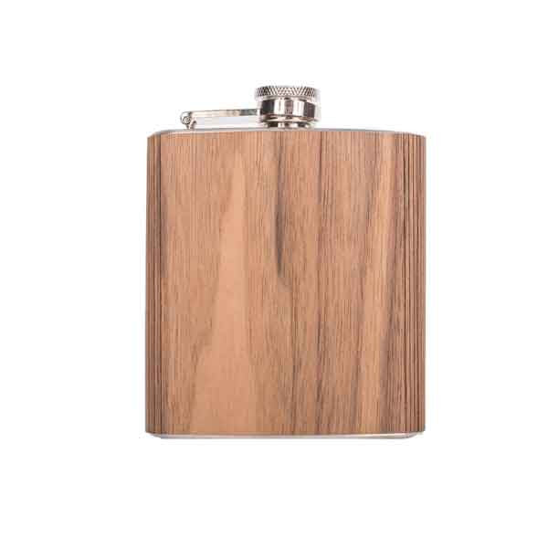 Imagine burning an etched logo into the 100% authentic wood exterior of a corporate gift. With a custom logo burned into the Woodchuck USA Walnut Wood Flask 6 oz, you create a corporate gift that leaves an enduring impression on your loyal customers and employees. Underneath the real wood finish is rugged stainless steel that prevents strong impacts and prolonged exposure to moisture from diminishing the quality of the wood flask. The larger version of the classic wood flask stores about seven shots of your favorite adult beverage for a relaxing hike or soothing canoe trip.