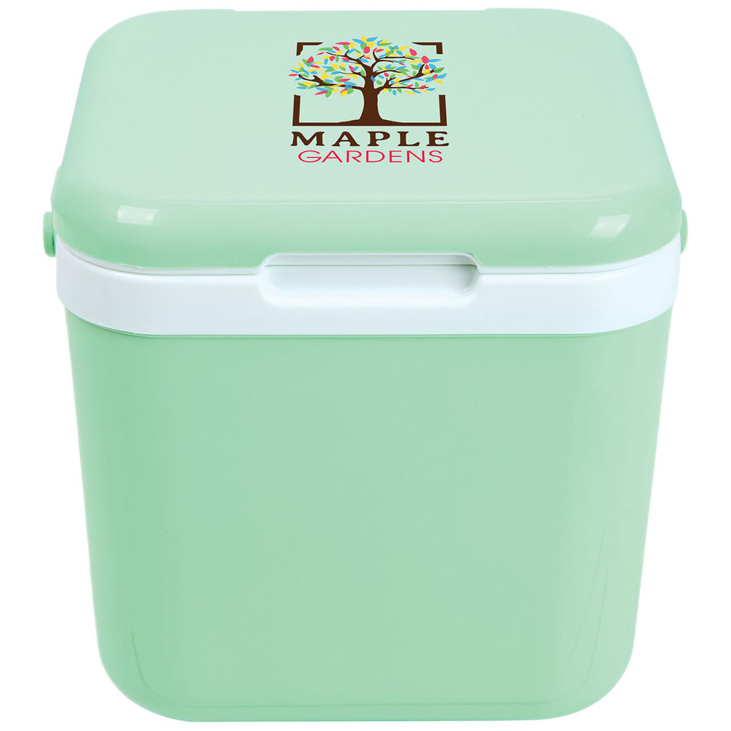 The Logomark Light Green 4.8 Qt Personal Lunch Box Cooler makes a practical custom gift for employee recognition or promotional resale. The compact size holds up to six cans and features a durable hard-sided exterior. The snap-shut lid and easy-carry handle make it ideal for worksites, outdoor events, or everyday lunch packing with your logo front and center.The minimum order for this product is 25 pieces.
