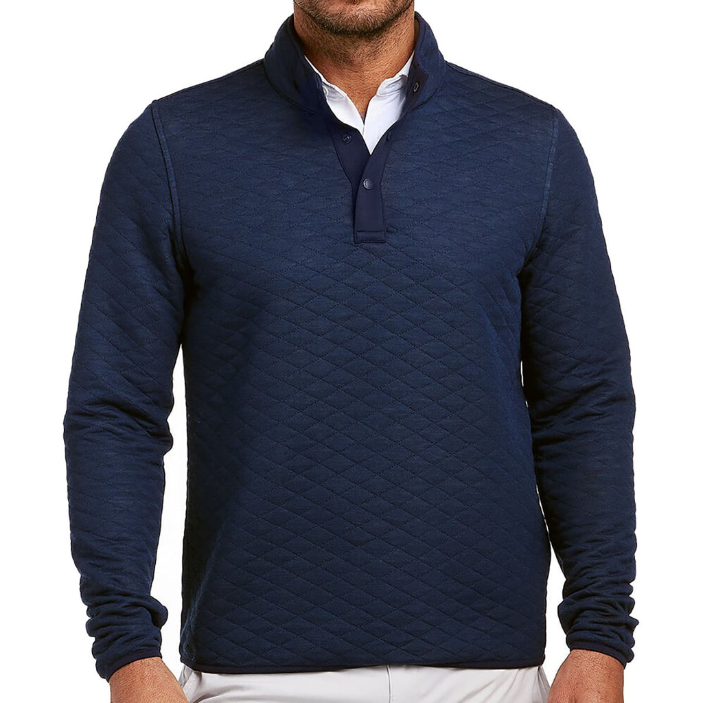 Corporate layering gets a refined upgrade with the Holderness & Bourne Men's Heathered Navy The Sullivan Pullover in heathered navy. This pullover is made from performance fleece and delivers lightweight warmth, stretch, and structure without bulk. The sleek design transitions easily from the course to casual Friday, making it a staple for cool-weather comfort and effortless professionalism.Highlights