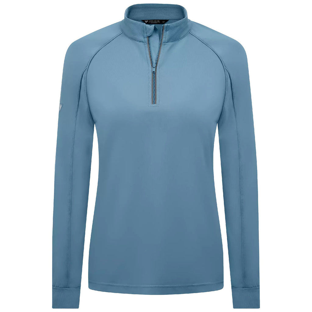 The Levelwear Women's Mute Blue Kinetic Midlayer Pullover offers corporate performance and comfort in a lightweight, custom layer. Its fitted design and stretch fabric allow for effortless movement, while the clean, sporty look supports a polished brand presence. Perfect for transitional weather, this piece enhances any uniform program with ease and elegance.This product cannot ship outside of the United States.
