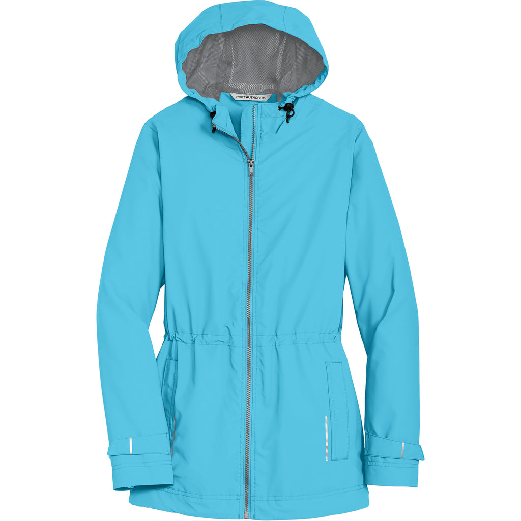 Why settle for an ordinary raincoat, when you remain warm and dry all the time by wearing the Port Authority Women's Isla Blue Northwest Slicker. One-hundred percent PU-coated polyester treats rain like an annoyance. Water droplets quickly form and roll off the jacket. Grommets under the arms encourage breathability and the polyester mesh interior circulates air to eliminate perspiration. The attachable hood stores easily in one of the front zippered pockets. The slicker makes an excellent gift for rewarding your team on employee appreciation day. Just remember to attach a custom logo that increases recognition of your company.Highlights
