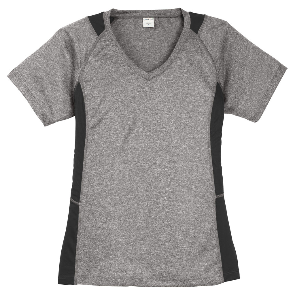 Sport-Tek Women's Vintage Heather/Black Heather Colorblock Contender V-Neck Tee