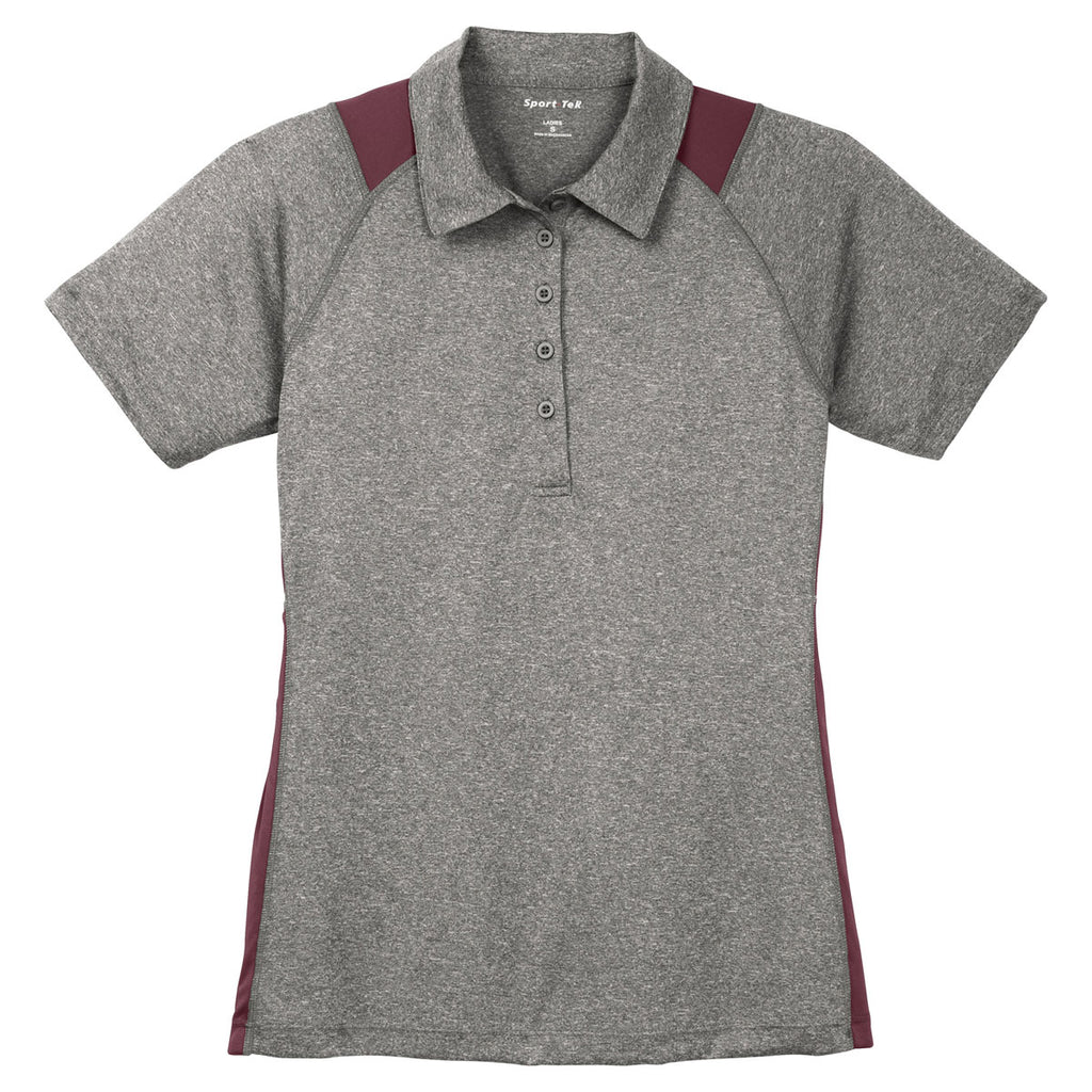 Sport-Tek Women's Vintage Heather/Maroon Heather Colorblock Contender Polo