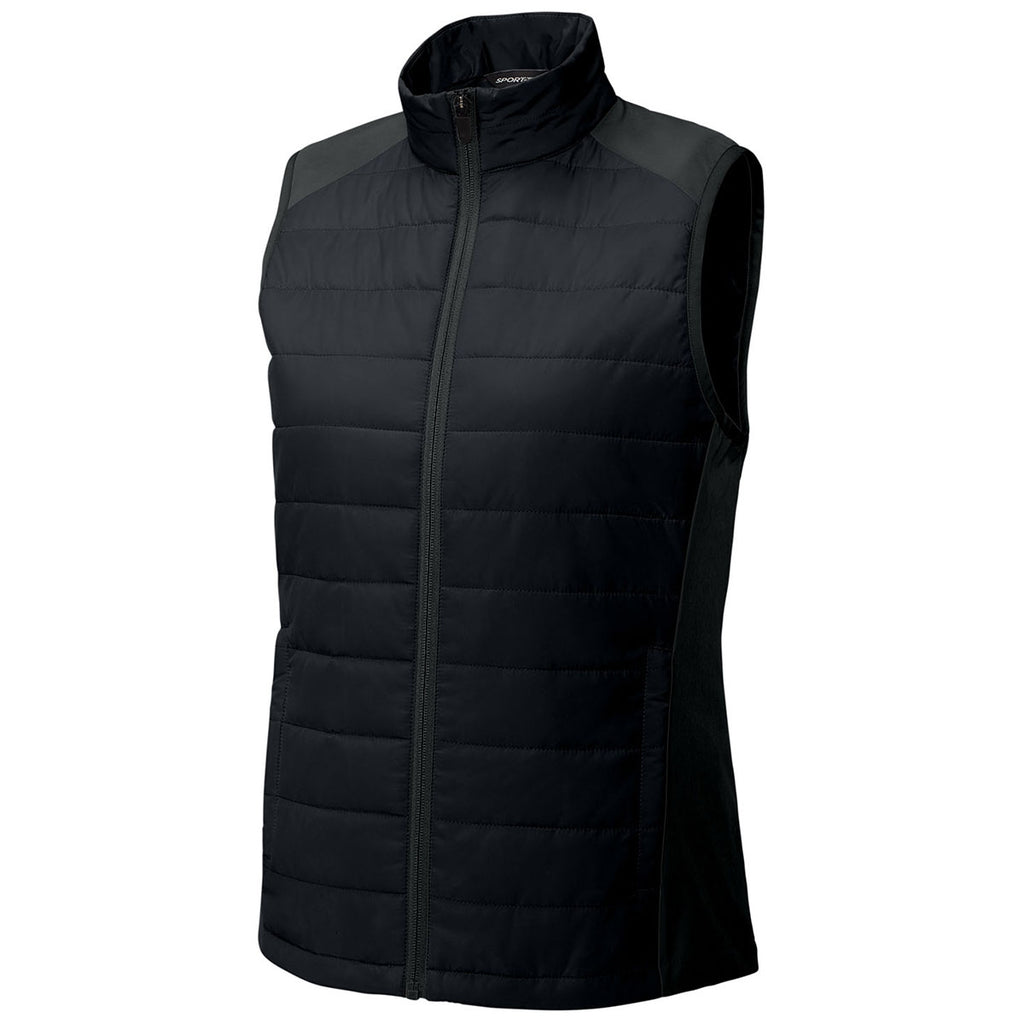 Corporate style blends with comfort in the Sport-Tek Women's Black Teknical Hybrid Vest. Lightweight insulation offers just the right amount of warmth, while stretch panels provide flexibility. Add a custom logo to create a versatile branded vest ideal for outdoor events, corporate uniforms, or seasonal gifts that reflect professionalism and practicality.