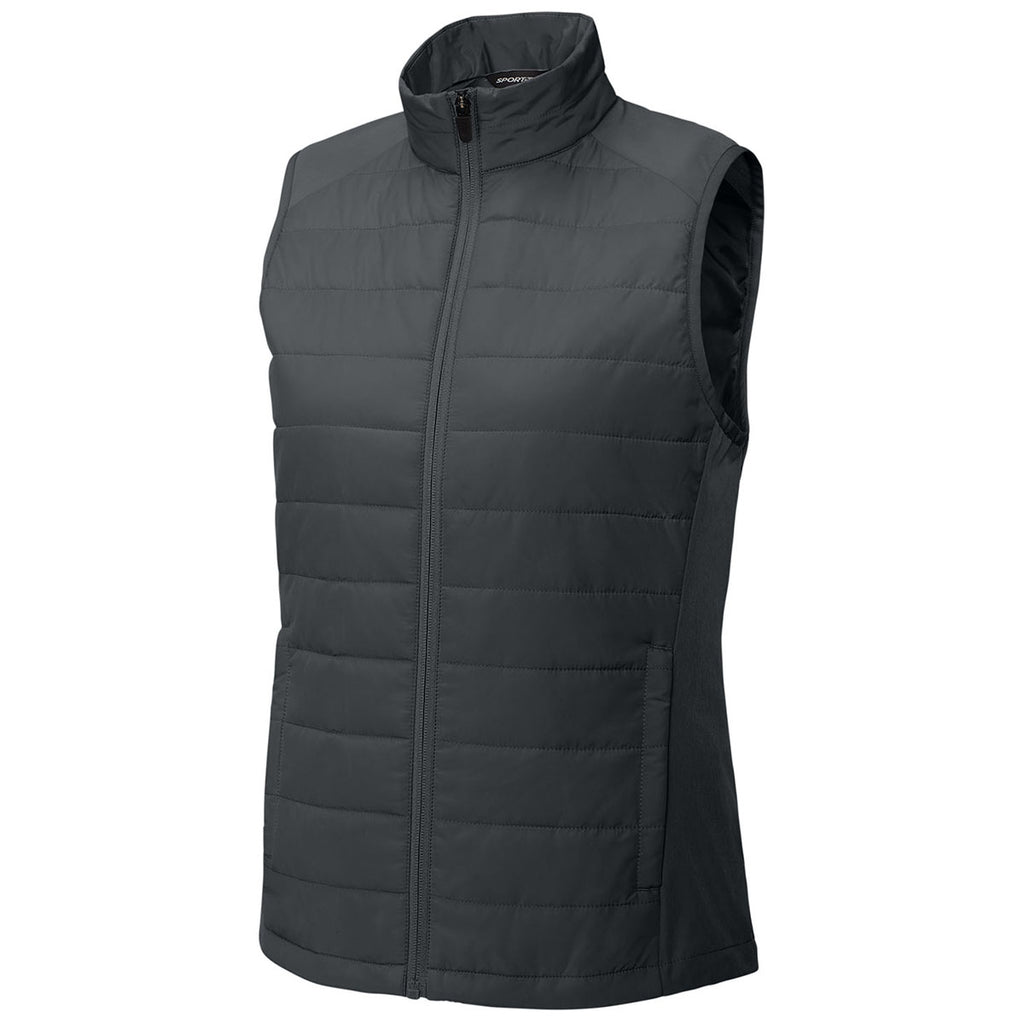 Corporate style blends with comfort in the Sport-Tek Women's Iron Grey Teknical Hybrid Vest. Lightweight insulation offers just the right amount of warmth, while stretch panels provide flexibility. Add a custom logo to create a versatile branded vest ideal for outdoor events, corporate uniforms, or seasonal gifts that reflect professionalism and practicality.