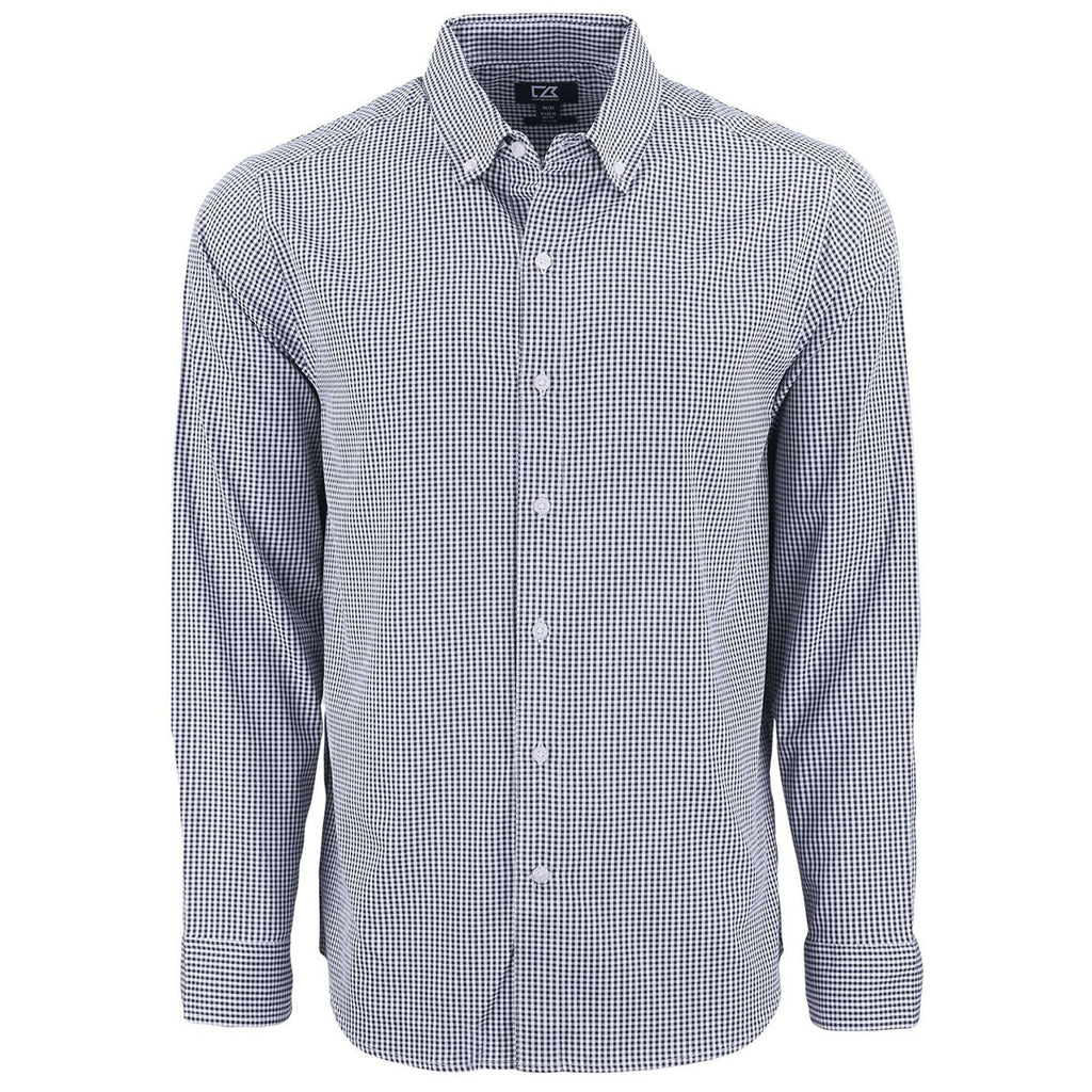 Cutter & Buck Men's Black/White Skyline Epic Confidence Recycled Gingham Long Sleeve Dress Shirt