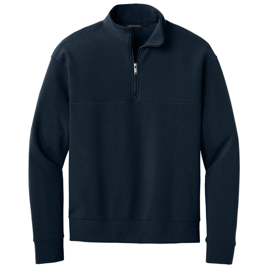 The custom Mercer+Mettle Men's Night Navy Linear Texture 1/4-Zip features a sophisticated textured design that pairs well with casual and professional attire. Crafted from high-quality materials, this pullover is breathable and moisture-wicking, making it perfect for active days or layering during cooler weather. Its modern look and comfort make it a go-to wardrobe staple.Corresponding Women's Style: Mercer+Mettle Women's Night Navy Linear Texture 1/4-Zip