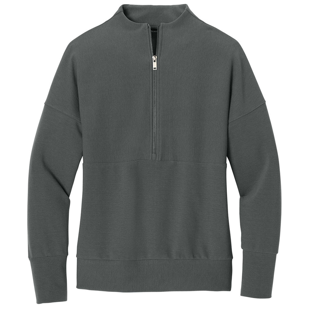 The Mercer+Mettle Women's Storm Grey Linear Texture 1/4-Zip with embroidery combines elegance and comfort with its textured fabric and sleek design. The 1/4-zip closure provides adjustable coverage while the moisture-wicking material keeps you cool and dry. Whether for work or weekend wear, this pullover offers a refined yet functional solution for layering.Corresponding Men's Style: Mercer+Mettle Men's Storm Grey Linear Texture 1/4-Zip