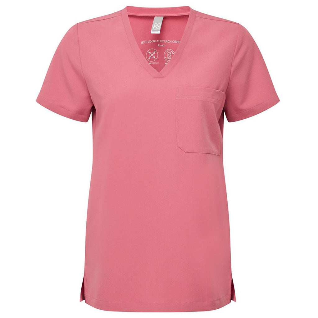 The Onna Women's Calm Pink Limitless V-Neck Stretch Scrub Top offers a sleek, professional appearance with optional embroidery for custom branding. Its soft, stretchable fabric provides comfort and freedom of movement throughout the day. Designed for busy healthcare professionals, this top delivers a polished look and practical functionality, making it perfect for team outfitting or everyday clinical wear.Corresponding Men's Style: Onna Men's Calm Pink Limitless V-Neck Stretch Scrub Top