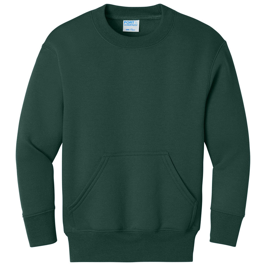 Port & Company Youth Dark Green Core Fleece Crewneck Pocket Sweatshirt