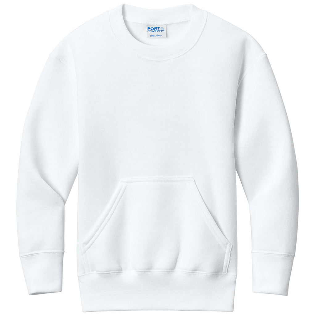 Port & Company Youth White Core Fleece Crewneck Pocket Sweatshirt