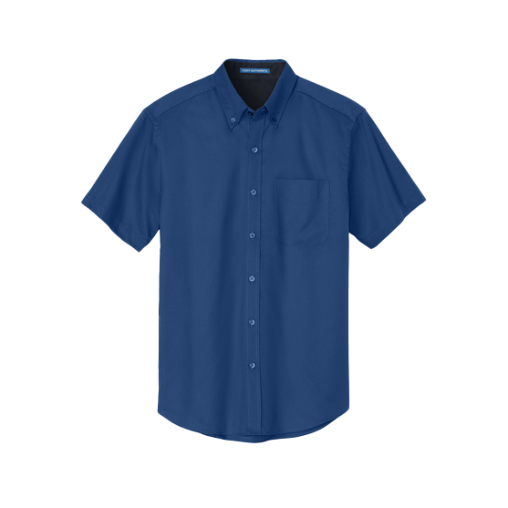 A short-sleeve button-down made for the workday but professional enough for upscale events? No, you're not dreaming: that's actually an apt description for Port Authority Men's Royal/Classic Navy Short Sleeve Easy Care Shirt. The 4.5-ounce, 55/45 cotton/poly blend fabric is perfect for breathing, while the button-down collar ensures that your employees will always be event-appropriate. The patch pocket scores points for function as well as dressiness, and the dyed-to-match buttons are as subtle as they are necessary. And if you ask us, a good work shirt should be understated, allowing your own corporate embroidery and custom business logo to earn the attention.Highlights