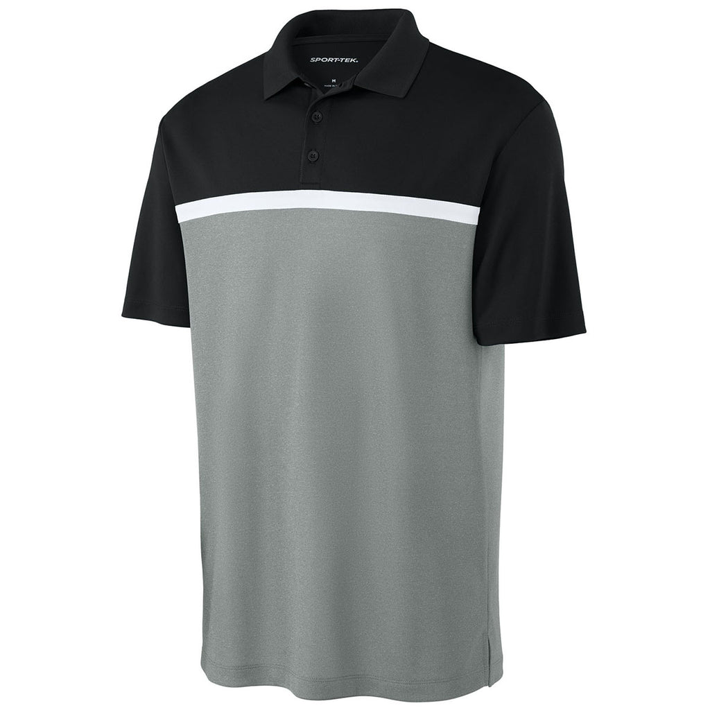 Sport-Tek Men's Black/Grey Concrete Heather/White UV Micropique Colorblock Polo