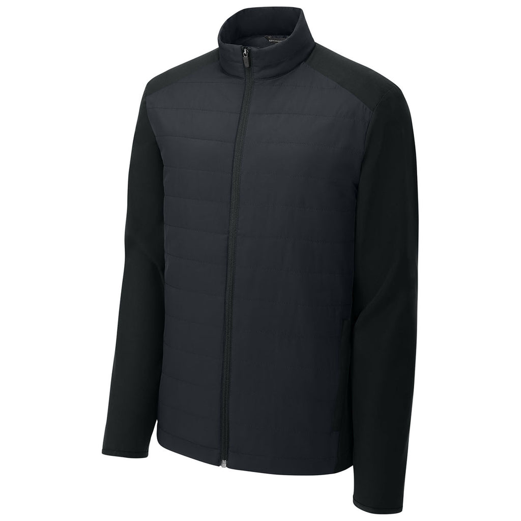 Custom branding enhances the Sport-Tek Men's Black Teknical Hybrid Jacket, designed for warmth and mobility. With insulated panels and stretch side fabric, it's built for comfort without bulk. As a corporate apparel piece, it delivers function and professionalism, making it a versatile option for employees, team members, or branded gifts.Corresponding Women's Style: Sport-Tek Women's Black Teknical Hybrid Jacket