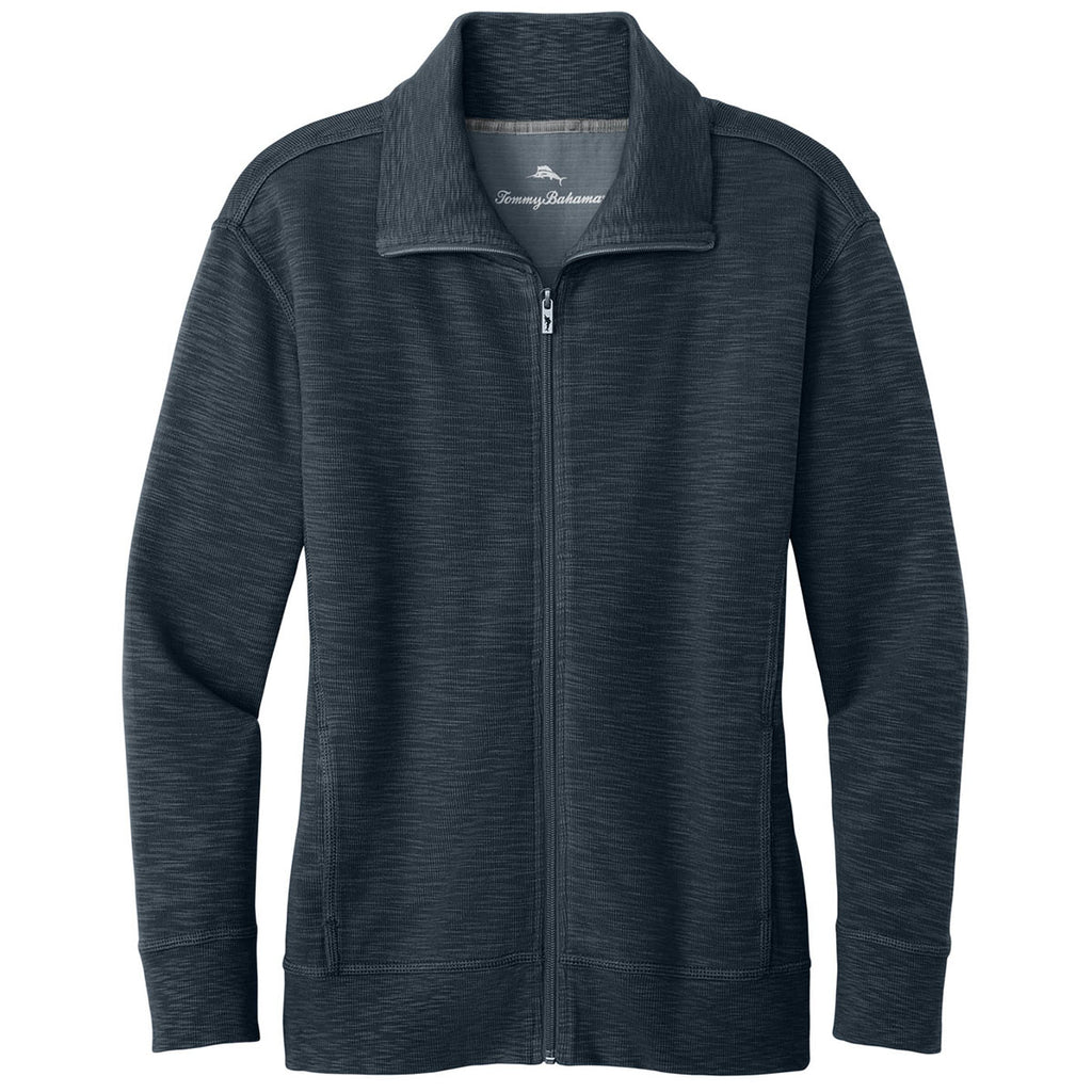 The Tommy Bahama Women's Blue Note Tobago Bay Full-Zip with a custom logo offers a relaxed yet refined look perfect for casual outings and professional environments. Crafted from soft, breathable fabric, it provides superior comfort with a flattering fit. This versatile jacket combines style, comfort, and performance, whether enjoying leisure time or commuting.This product can only ship within the United States and Canada.