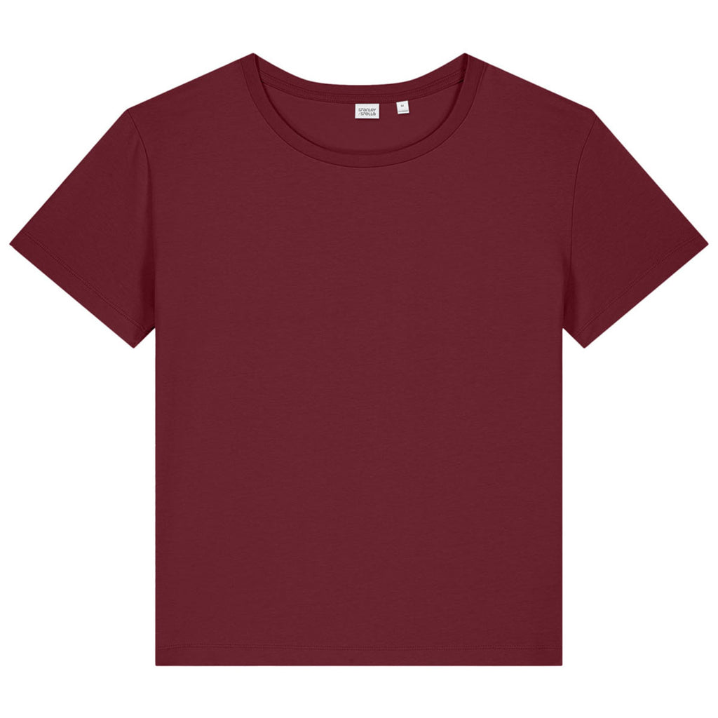 Stanley/Stella Women's Burgundy Stella Serena Scoop Neck Tee with a custom print design combines a flattering scoop neckline with the softness of organic cotton. The relaxed fit makes it easy to wear for any occasion, whether at home or out with friends. This tee's eco-friendly material adds an extra layer of appeal, making it an easy choice for those who value sustainability.