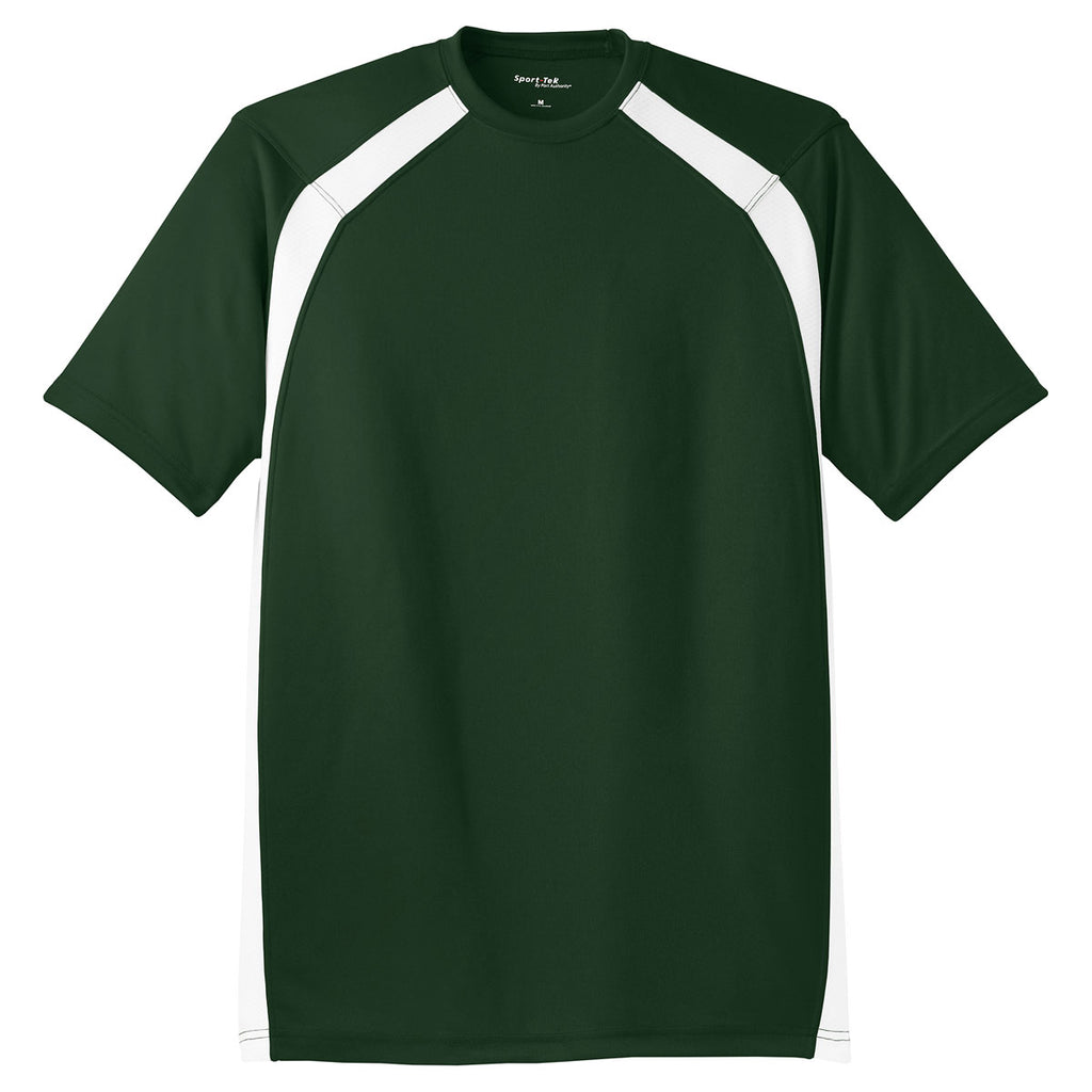 There is a 12 piece minimum on all orders for Sport-Tek t-shirts. This item will be imprinted, not embroidered.Is there anyone who doesn't like a good T-shirt? If so, we haven't met them. This Sport-Tek Men's Forest Green/White Dry Zone Colorblock Crew is an especially astute choice. But T-shirts aren't all about the clothing on your backodd as it might sound to saybecause they can also help your company create some corporate apparel that people will love. By giving them to employees or as giveaways, you can use them to promote your brand and spread the word about specific events. Or you can wear them. That's fine too.