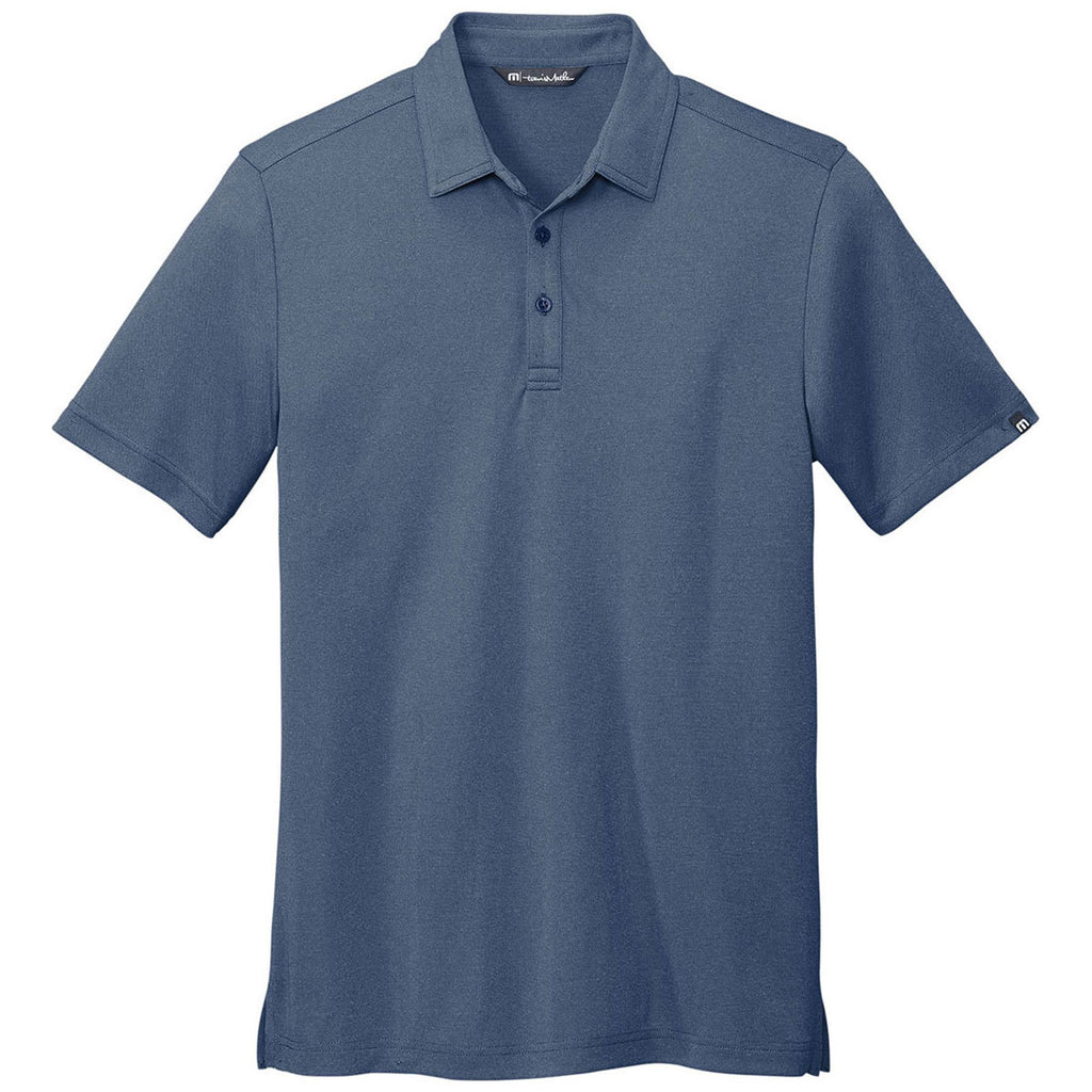 Design your embroidery for the logo-branded TravisMathew Men's Vintage Indigo/Black Coto Performance Polo for a look to add to your wardrobe or sale as a unique product in your line. This classic polo styling is made of 100% polyester for a lightweight look and feel that can go from the office to the driving range and then out with friends. Made with four-way stretch, quick drying technology, and wrinkle resistance, this TravisMathew performance polo is a true must-have for the professional that likes to relax and unwind in the evenings while still looking great. A self-fabric collar and open hem sleeves allow you to dress this polo up or down as needed.