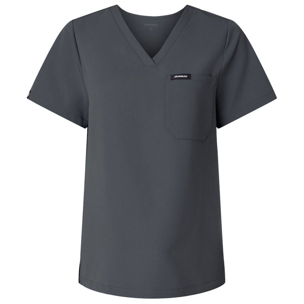 Jaanuu Women's Carbon Grey Rhena Essential 1-Pocket Scrub V-Neck Top
