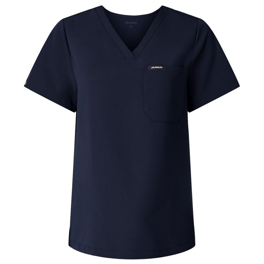 Jaanuu Women's Midnight Navy Rhena Essential 1-Pocket Scrub V-Neck Top with a corporate logo is a simple and classic way to outfit your staff while showcasing your brand. The classic fitting scrub top has a tuckable design for versatility whether you are a nurse, work in a spa, or simply enjoy wearing scrubs.Corresponding Men's Style: Jaanuu Men's Midnight Navy Holmes Everyday 1-Pocket Scrub V-Neck Top