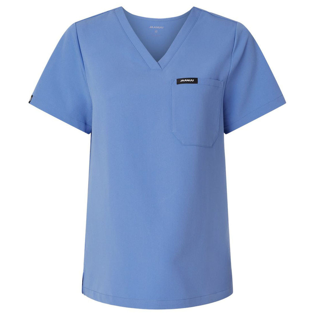 Jaanuu Women's Ceil Blue Rhena Essential 1-Pocket Scrub V-Neck Top