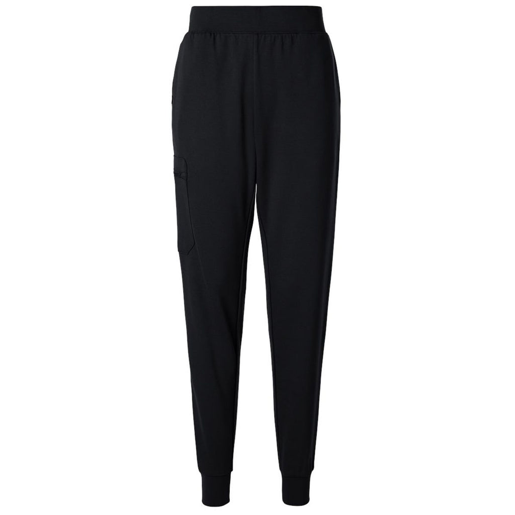 Jaanuu Women's Black Rubi Ultrasoft Scrub Joggers with custom embroidery make a great gift or corporate uniform for those in the healthcare or health and wellness industries. These slim fitting joggers have four-way stretch, moisture management properties, and several pockets for convenience as you go about your day.Highlights