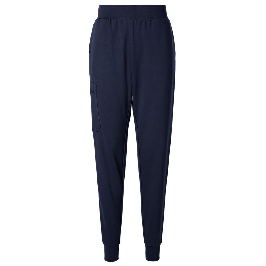 Jaanuu Women's Midnight Navy Rubi Ultrasoft Scrub Joggers with custom embroidery make a great gift or corporate uniform for those in the healthcare or health and wellness industries. These slim fitting joggers have four-way stretch, moisture management properties, and several pockets for convenience as you go about your day.Highlights