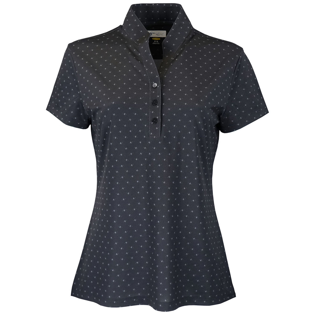 Greg Norman Women's Black Micro Pique Spinner Print Polo