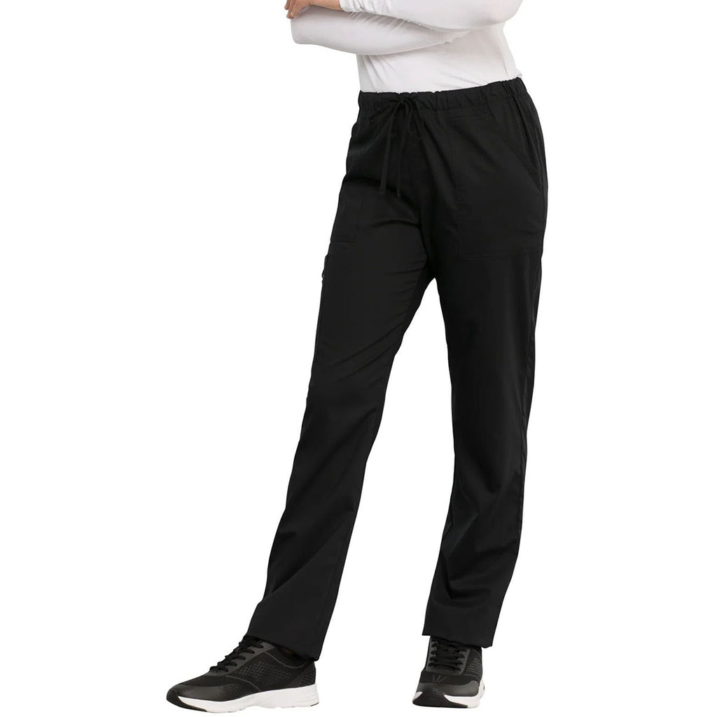Cherokee Unisex Black 4-Pocket Tapered Leg Drawstring Pant with a corporate logo is a versatile option for work and play. The modern fitting pant is mid-rise with a functional drawstring and elastic waistband. With four total pockets, you can easily carry everything you need as you head to work, enjoy the outdoors, or just hang with friends.Highlights